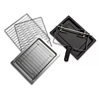 - Can fit a 5lb chicken using the revolving rotisserie