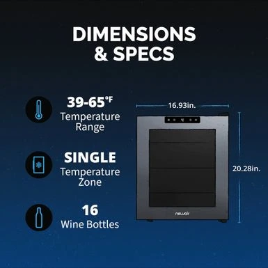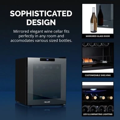 After a long day, theres nothing better than the company of good friends, good food, and a great glass of wine. The Newair Shadow Series 16 Bottle Wine Fridge lets you enjoy the finer things in lifeand looks great doing it. The sleek, updated design features a mirrored glass door that blends perfectly into your dcor while resisting smudges and fingerprints. The double pane glass blocks harmful UV rays to protect your wines flavor and aroma. The durable control panel is built right into the glass, allowing you to select the perfect temperature with ease. Its never been easieror more stylishto serve up your favorite vintage. ย