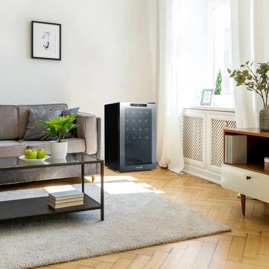 After a long day, theres nothing better than the company of good friends, good food, and a great glass of wine. The Newair Shadow Series 24 Bottle Wine Fridge lets you enjoy the finer things in lifeand looks great doing it. The sleek, updated design features a mirrored glass door that blends perfectly into your dcor while resisting smudges and fingerprints. The double pane glass blocks harmful UV rays to protect your wines flavor and aroma. The durable control panel is built right into the glass, allowing you to select the perfect temperature with ease. Its never been easieror more stylishto serve up your favorite vintage.